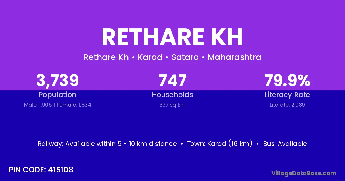 Karad (16 km) is the nearest town to Rethare Kh village for major economic activities and is located approximately 16 km away.