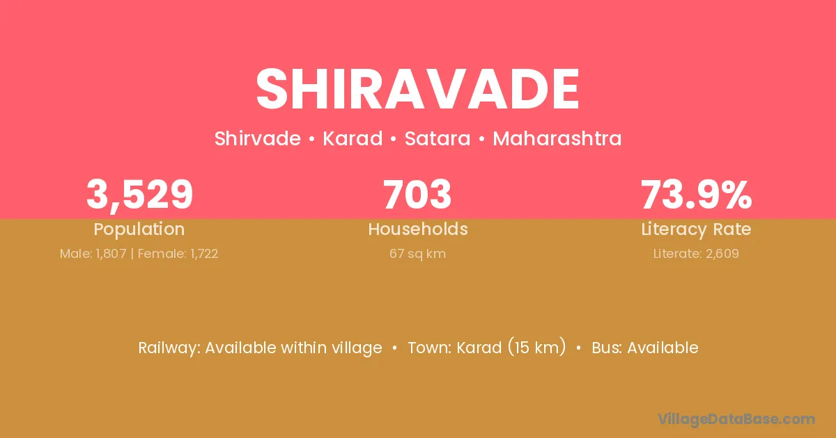 Karad (15 km) is the nearest town to Shiravade village for major economic activities and is located approximately 15 km away.