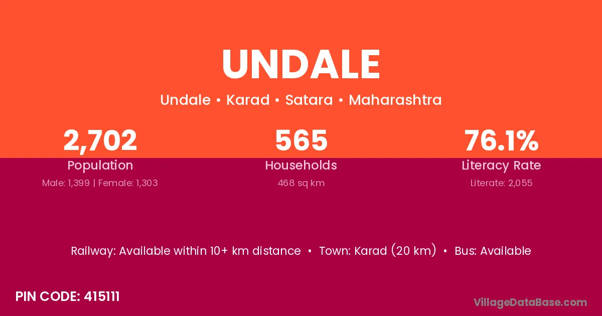 Karad (20 km) is the nearest town to Undale village for major economic activities and is located approximately 20 km away.