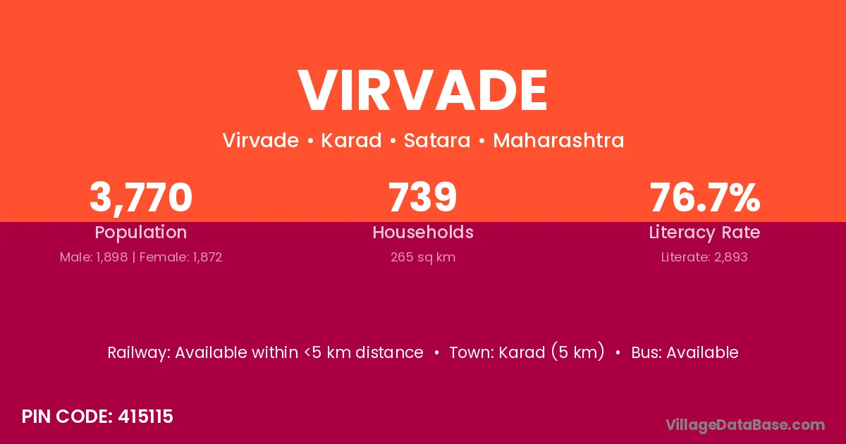 Karad (5 km) is the nearest town to Virvade village for major economic activities and is located approximately 5 km away.