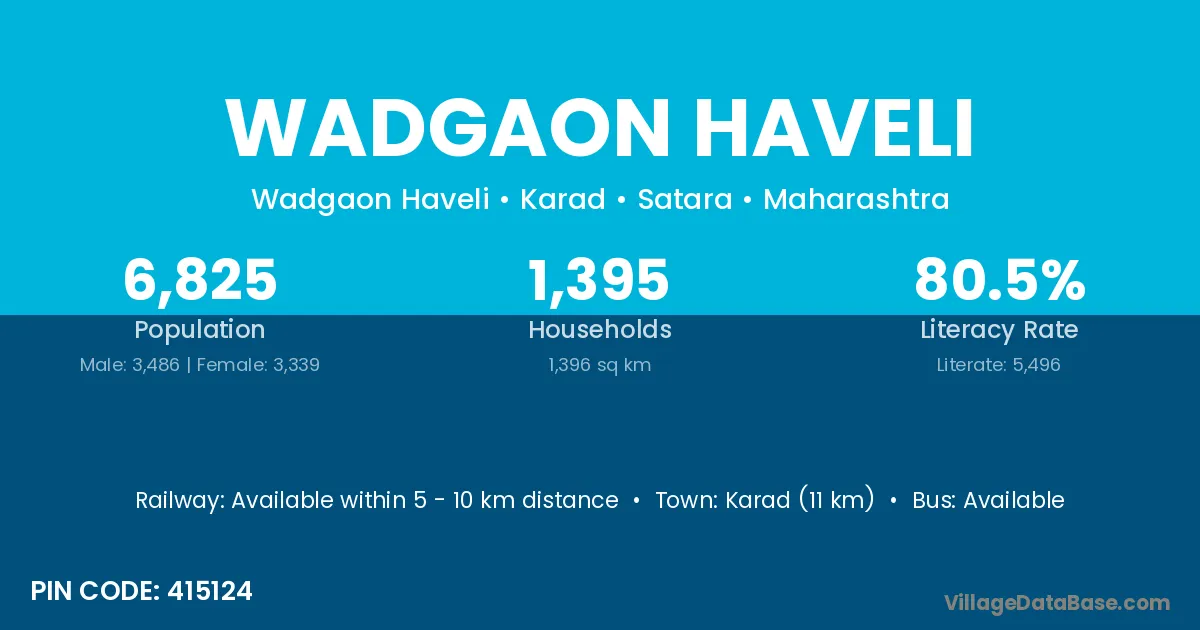 Karad (11 km) is the nearest town to Wadgaon Haveli village for major economic activities and is located approximately 11 km away.