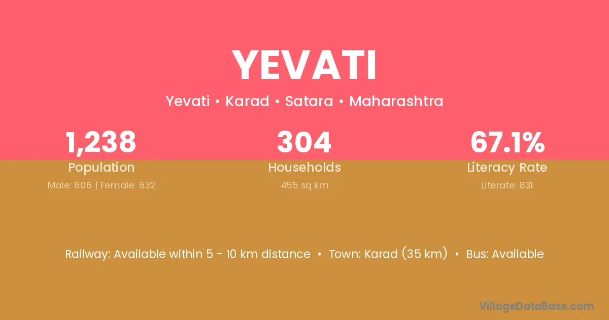 Karad (35 km) is the nearest town to Yevati village for major economic activities and is located approximately 35 km away.
