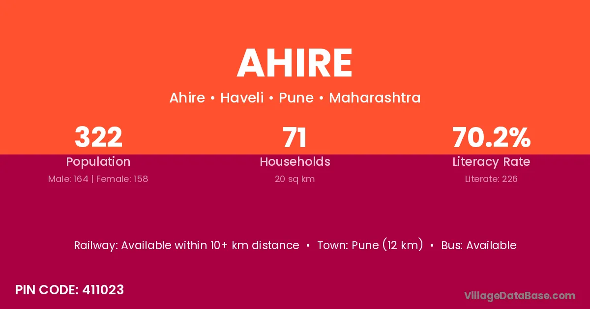 Wai (35 km) is the nearest town to Ahire village for major economic activities and is located approximately 35 km away.