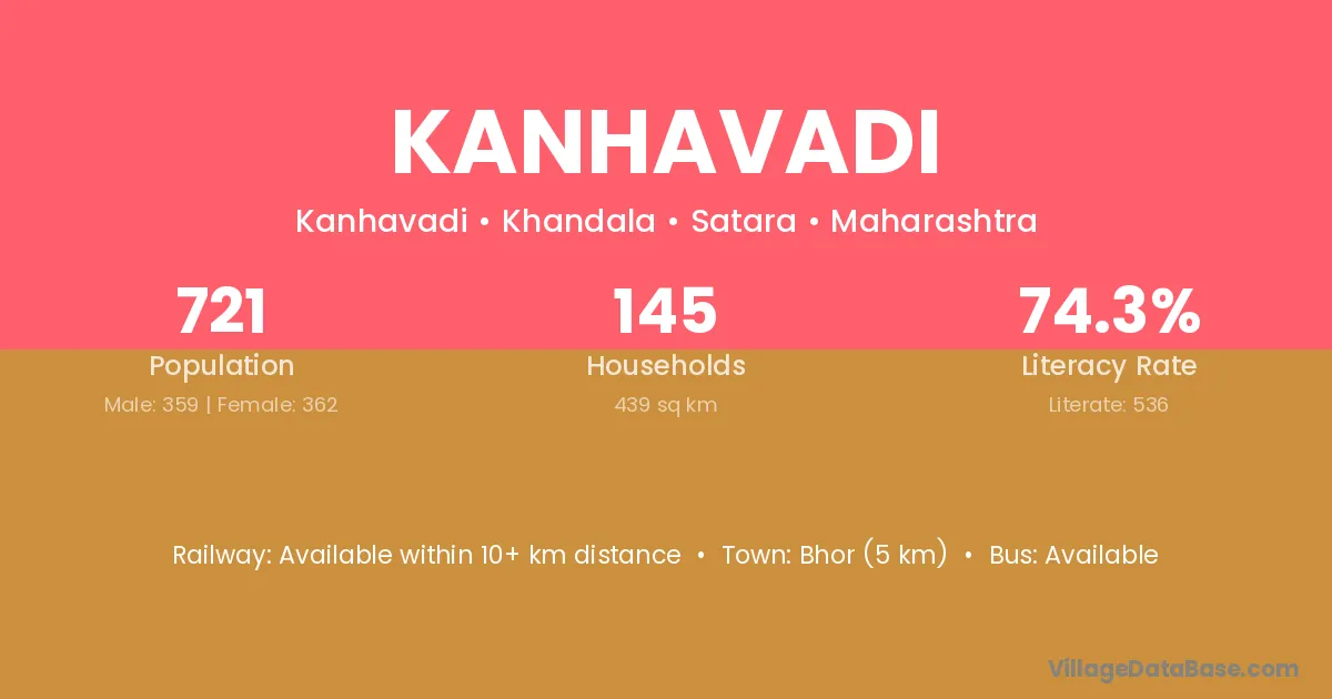 Bhor (5 km) is the nearest town to Kanhavadi village for major economic activities and is located approximately 5 km away.