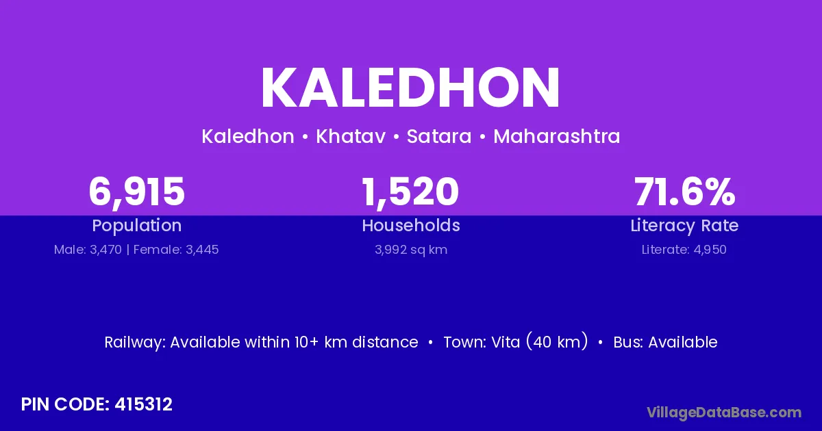 Vita (40 km) is the nearest town to Kaledhon village for major economic activities and is located approximately 40 km away.
