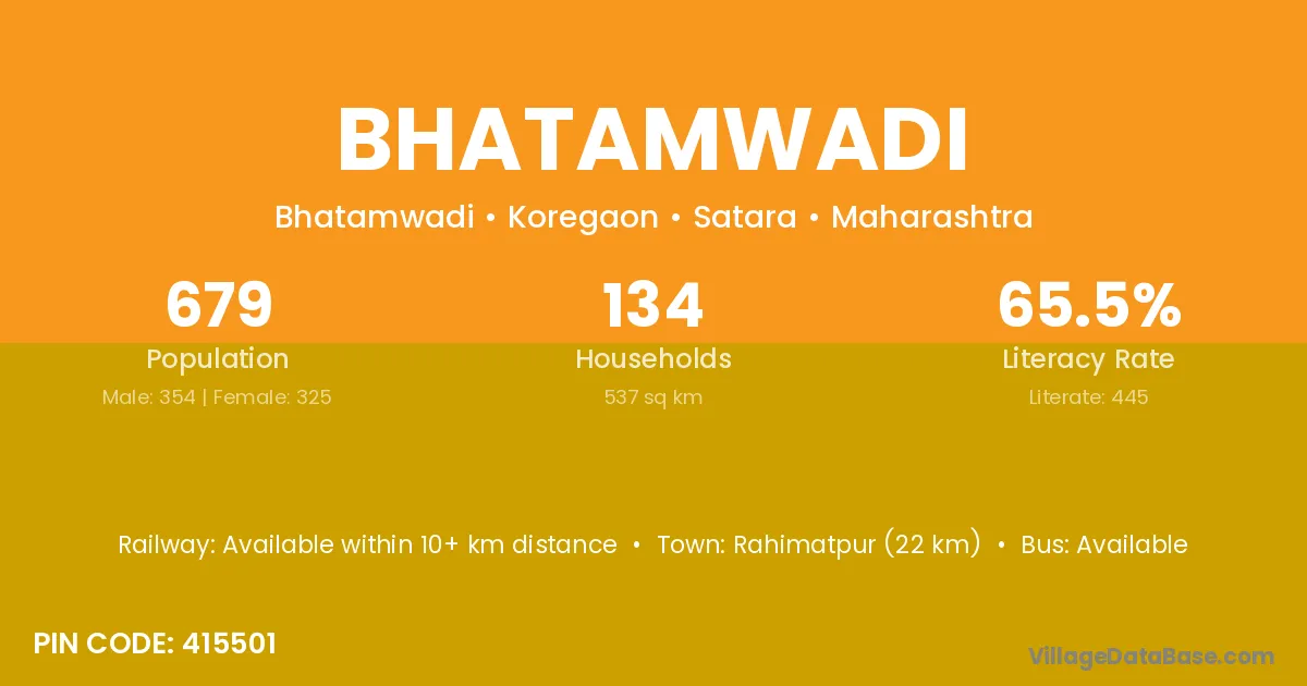 Bhatamwadi village has a total population of 679 people, of which 354 are males and 325 are females.