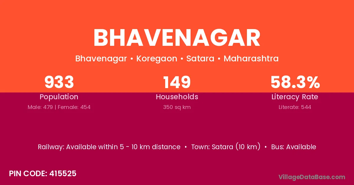 Satara (10 km) is the nearest town to Bhavenagar village for major economic activities and is located approximately 10 km away.
