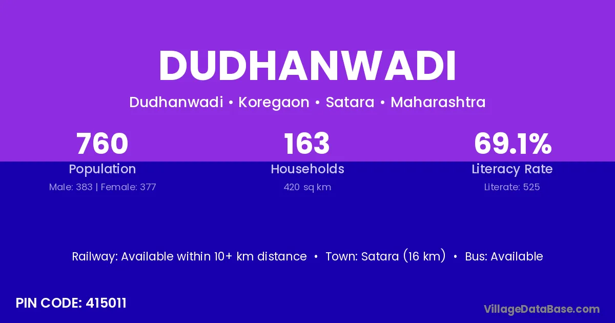 Dudhanwadi village has a total population of 760 people, of which 383 are males and 377 are females.