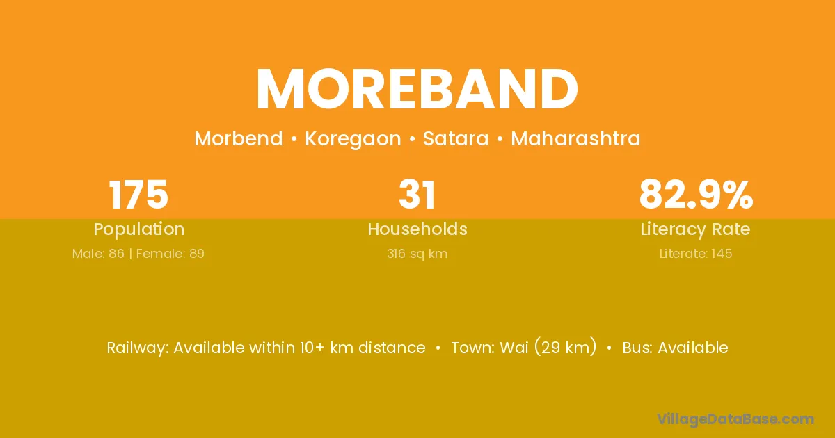 Wai (29 km) is the nearest town to Moreband village for major economic activities and is located approximately 29 km away.