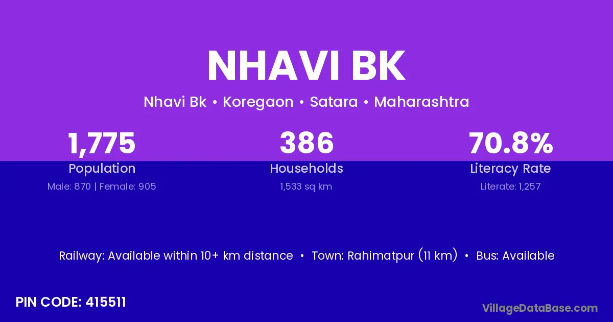 Rahimatpur (11 km) is the nearest town to Nhavi Bk village for major economic activities and is located approximately 11 km away.