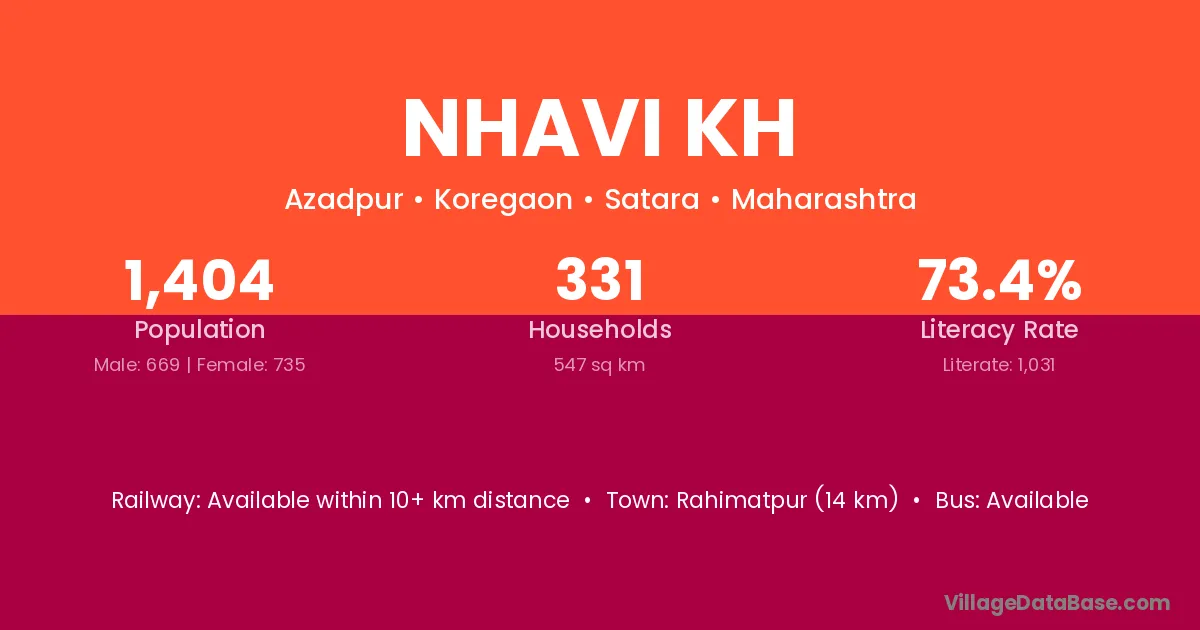 Nhavi Kh village has a total population of 1,404 people, of which 669 are males and 735 are females.