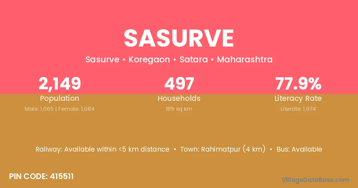 Rahimatpur (4 km) is the nearest town to Sasurve village for major economic activities and is located approximately 4 km away.