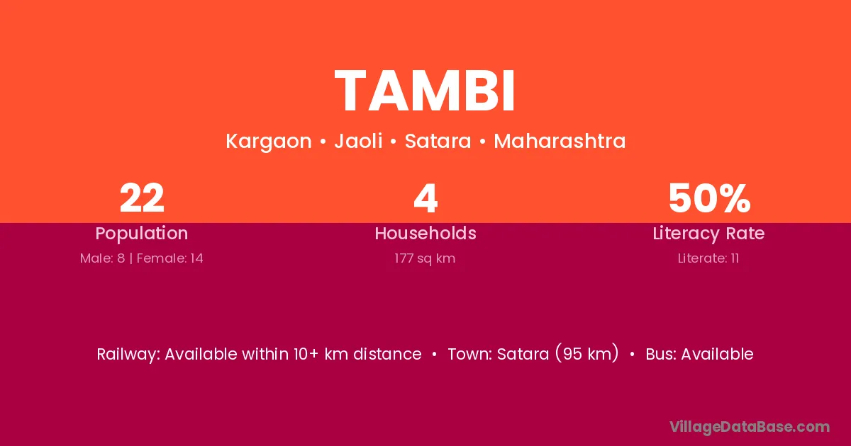 Satara (20 km) is the nearest town to Tambi village for major economic activities and is located approximately 20 km away.