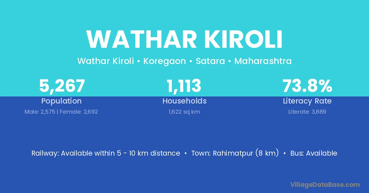 Rahimatpur (8 km) is the nearest town to Wathar Kiroli village for major economic activities and is located approximately 8 km away.