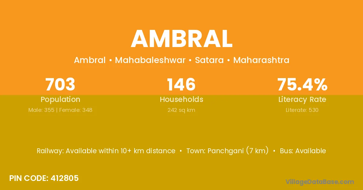 Panchgani (7 km) is the nearest town to Ambral village for major economic activities and is located approximately 7 km away.