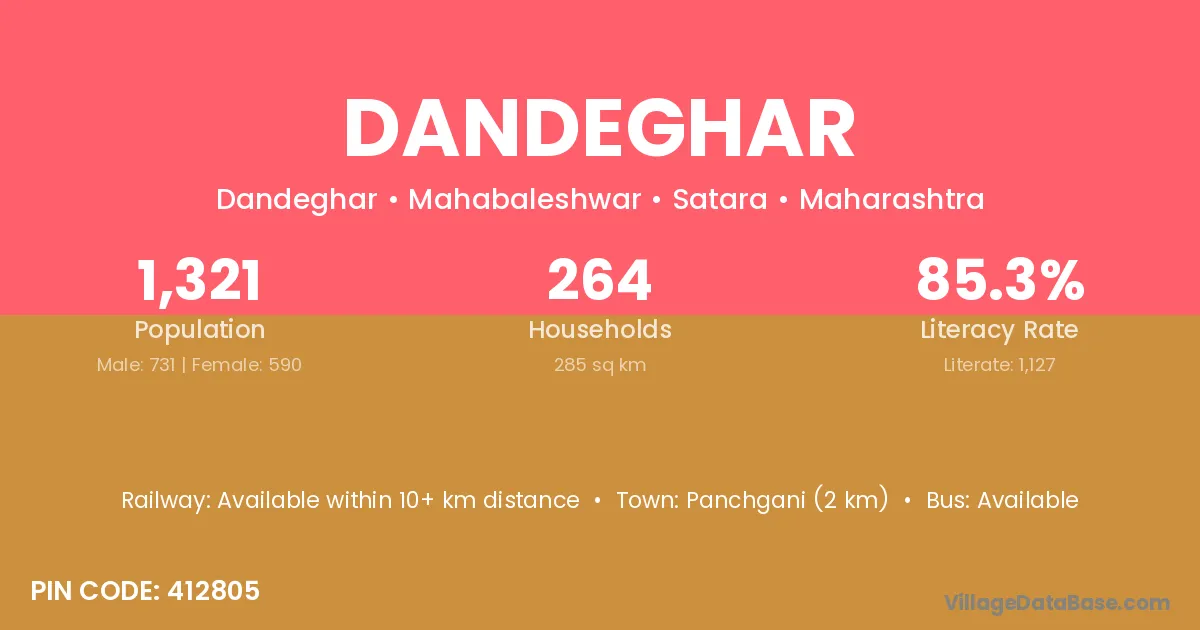 Panchgani (2 km) is the nearest town to Dandeghar village for major economic activities and is located approximately 2 km away.