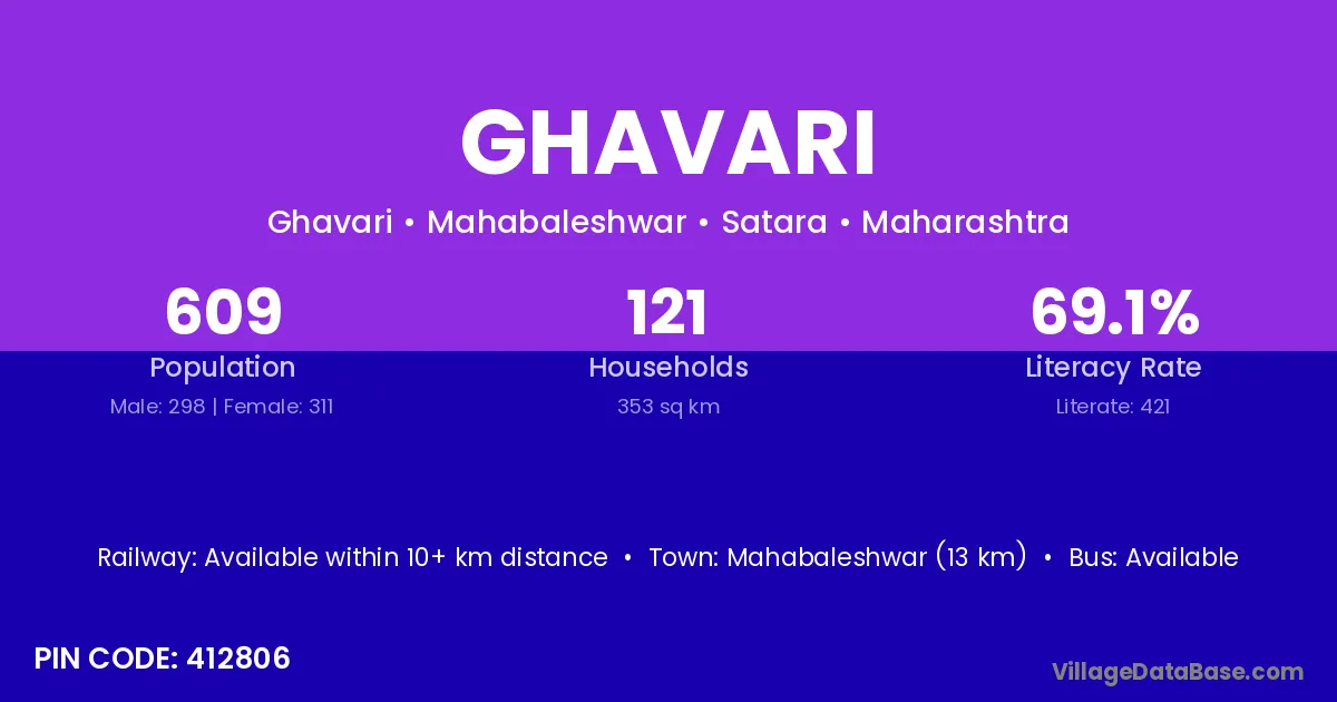 Mahabaleshwar (13 km) is the nearest town to Ghavari village for major economic activities and is located approximately 13 km away.