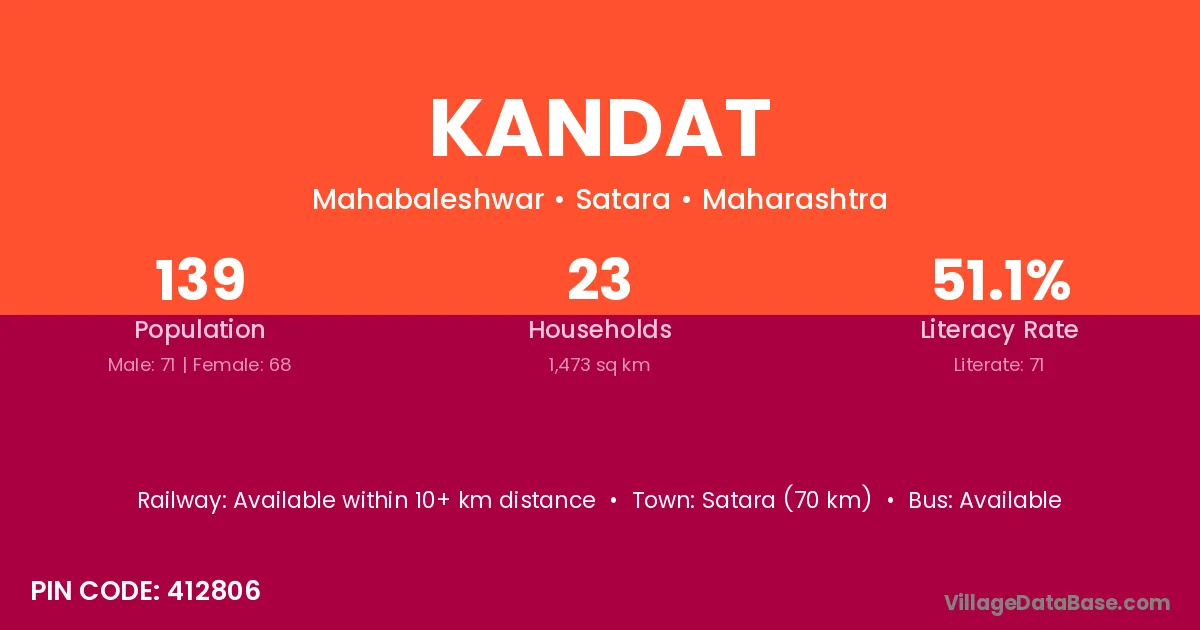 Satara (70 km) is the nearest town to Kandat village for major economic activities and is located approximately 70 km away.