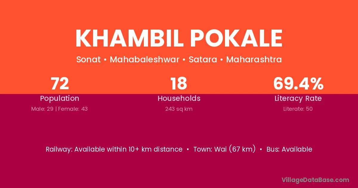 Wai (67 km) is the nearest town to Khambil Pokale village for major economic activities and is located approximately 67 km away.