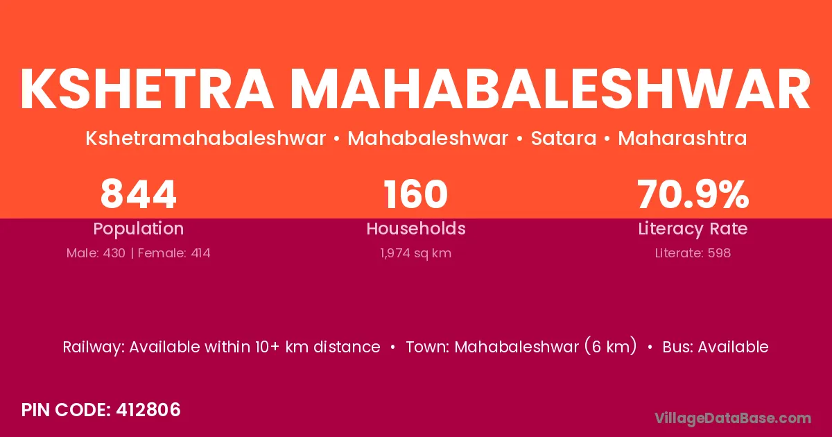 According to Census 2011 information, the village code of Kshetra Mahabaleshwar village is 412806.