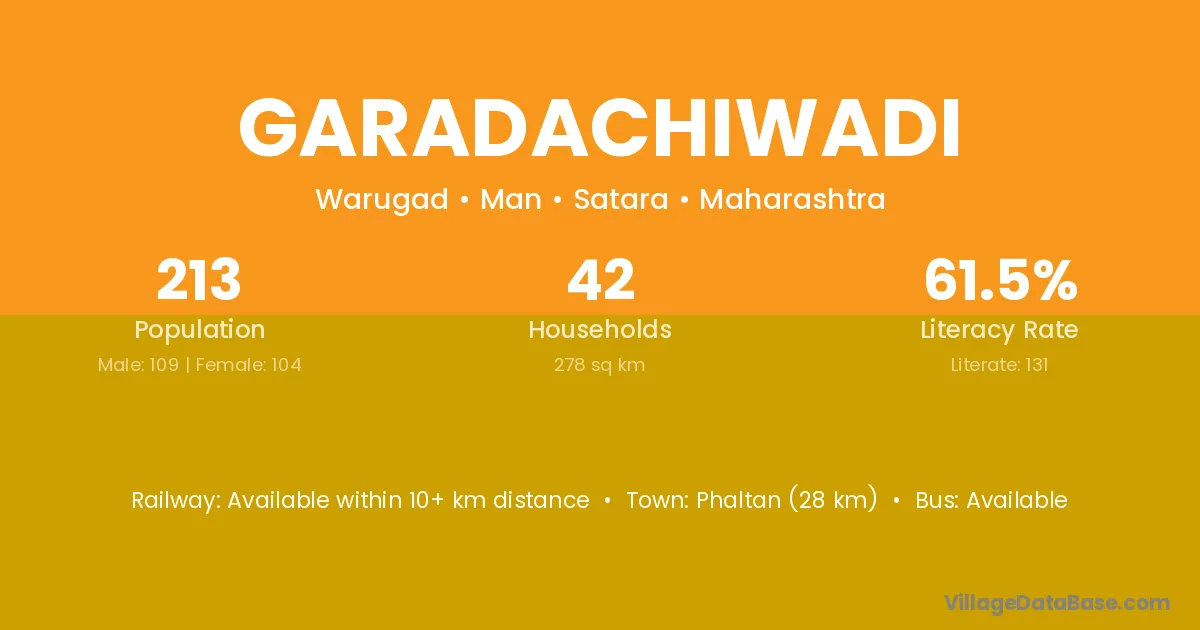 Garadachiwadi village has a total population of 213 people, of which 109 are males and 104 are females.