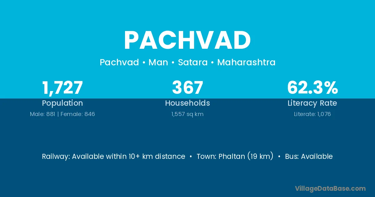 Phaltan (19 km) is the nearest town to Pachvad village for major economic activities and is located approximately 19 km away.