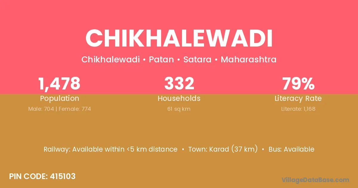 Chikhalewadi village has a total population of 1,478 people, of which 704 are males and 774 are females.