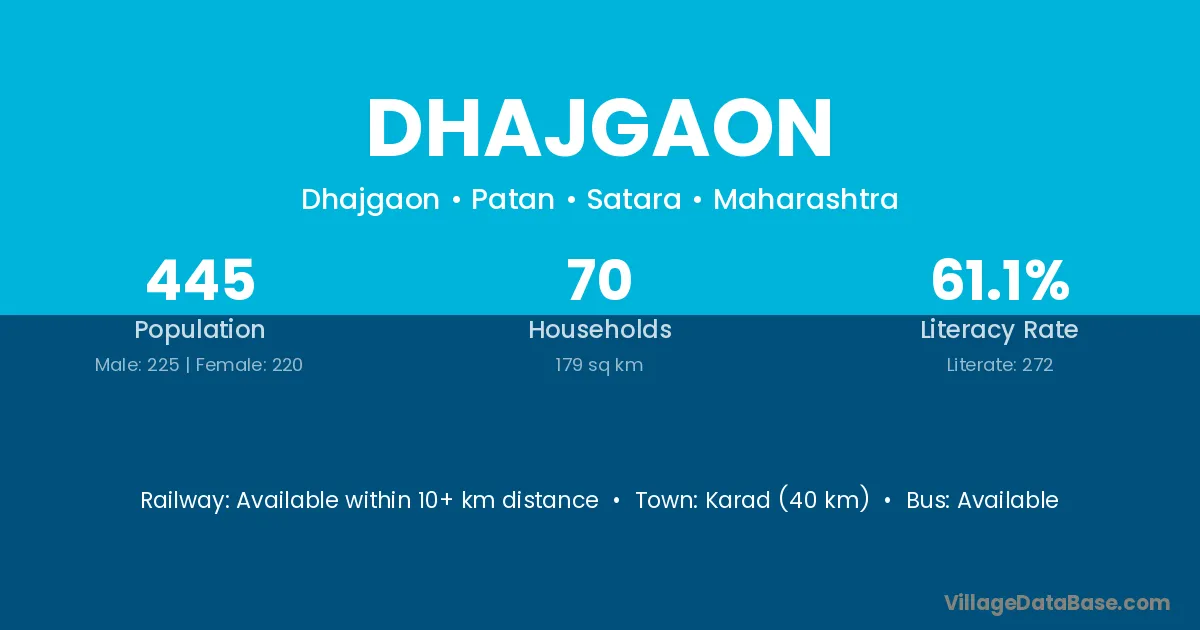 Karad (40 km) is the nearest town to Dhajgaon village for major economic activities and is located approximately 40 km away.