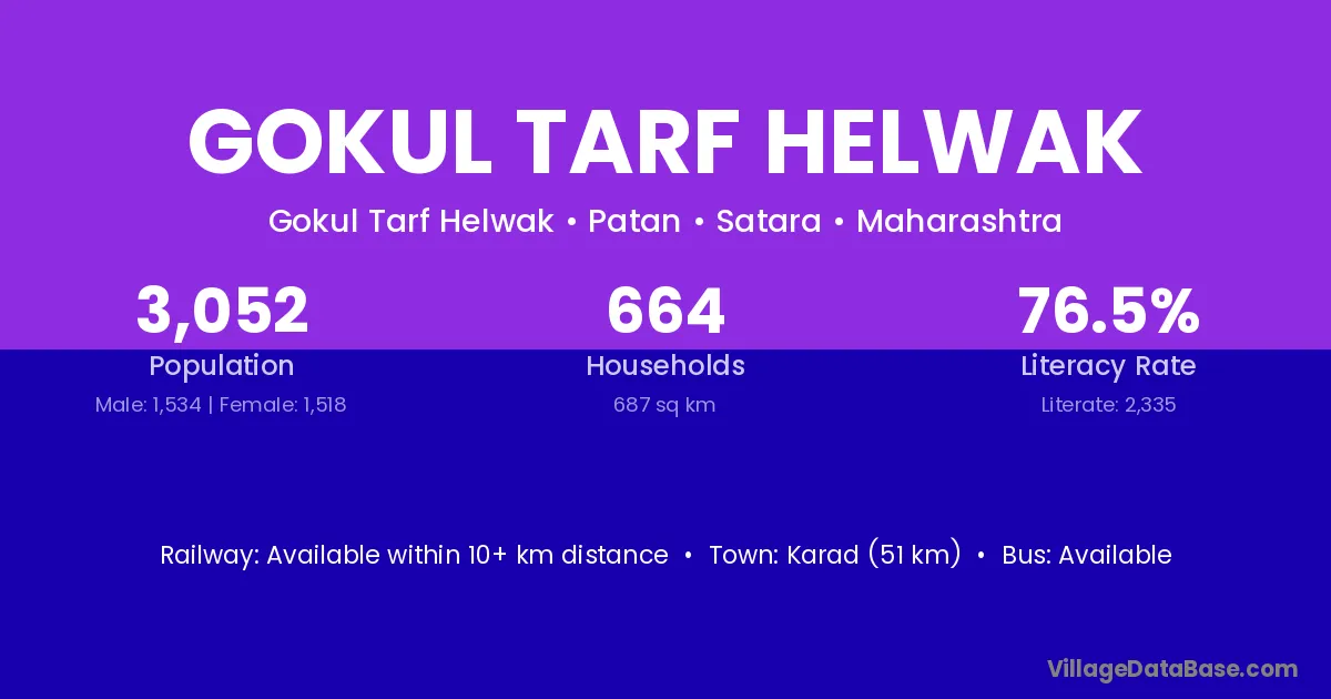 Karad (51 km) is the nearest town to Gokul Tarf Helwak village for major economic activities and is located approximately 51 km away.