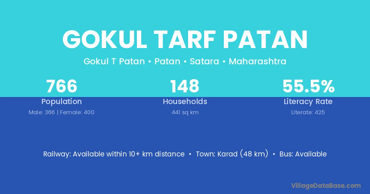 Karad (48 km) is the nearest town to Gokul Tarf Patan village for major economic activities and is located approximately 48 km away.