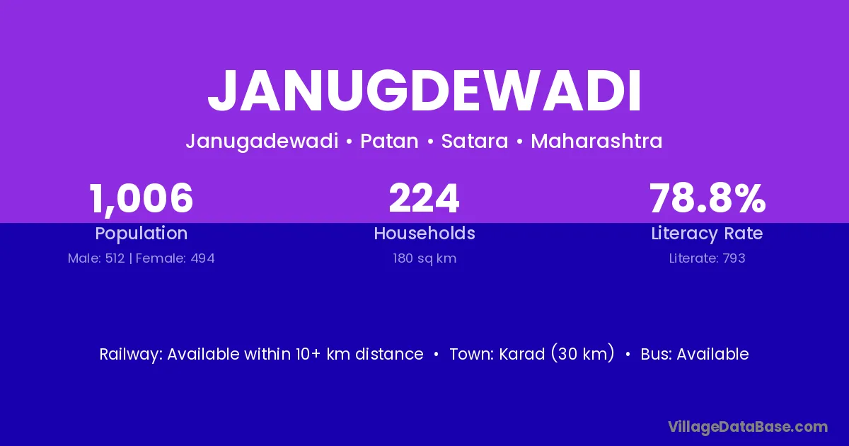 Karad (30 km) is the nearest town to Janugdewadi village for major economic activities and is located approximately 30 km away.