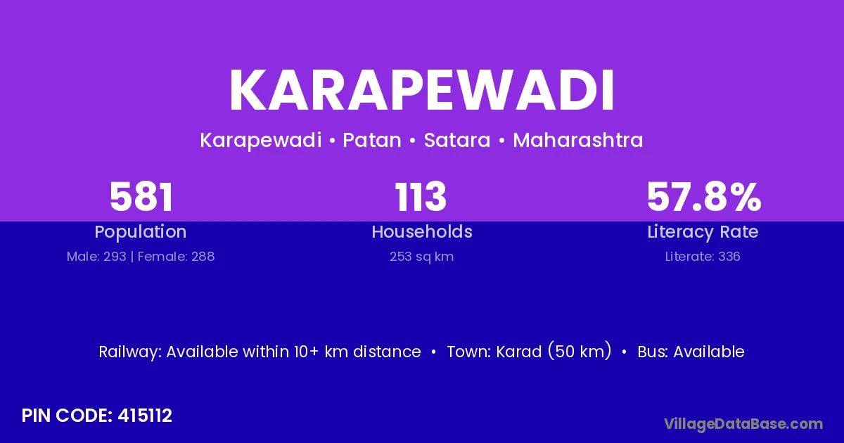 Karad (50 km) is the nearest town to Karapewadi village for major economic activities and is located approximately 50 km away.