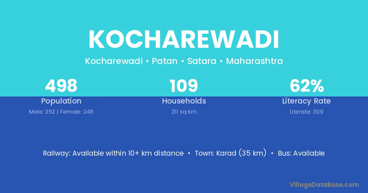 Kocharewadi village has a total population of 498 people, of which 252 are males and 246 are females.