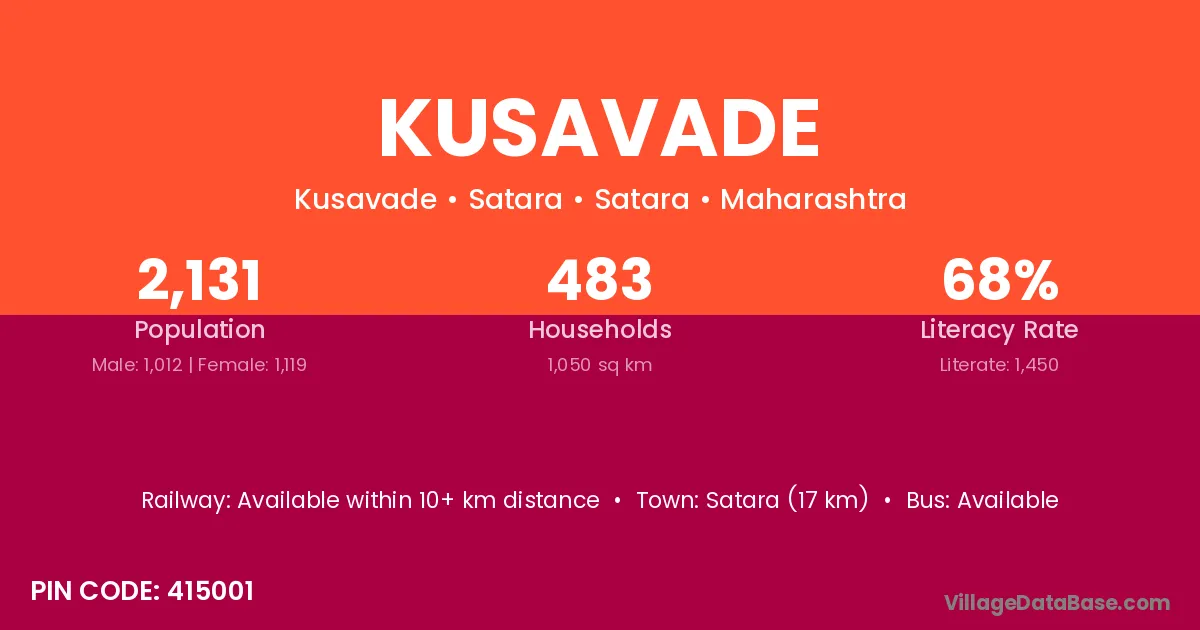 Satara (65 km) is the nearest town to Kusavade village for major economic activities and is located approximately 65 km away.