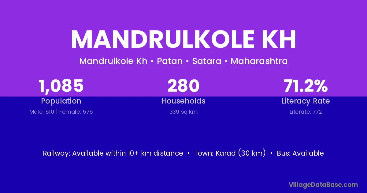 Karad (30 km) is the nearest town to Mandrulkole Kh village for major economic activities and is located approximately 30 km away.