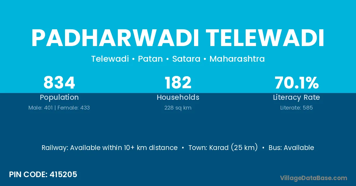 Karad (25 km) is the nearest town to Padharwadi Telewadi village for major economic activities and is located approximately 25 km away.
