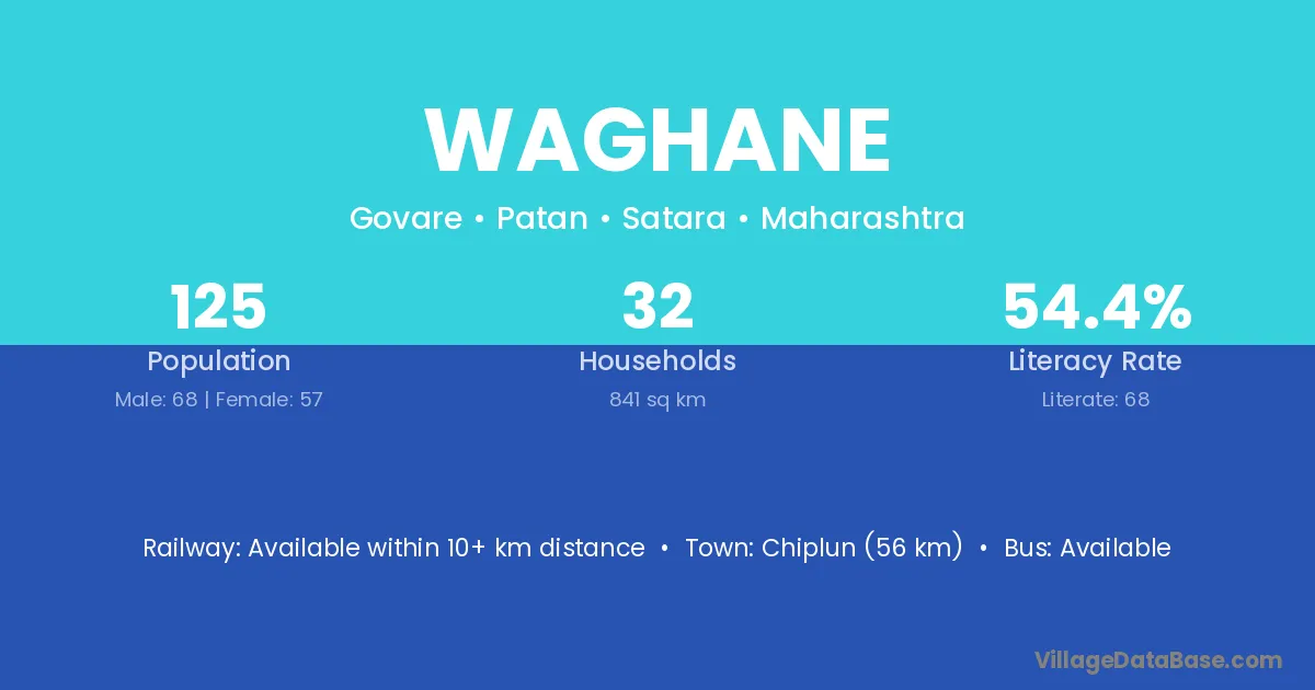 Chiplun (56 km) is the nearest town to Waghane village for major economic activities and is located approximately 56 km away.