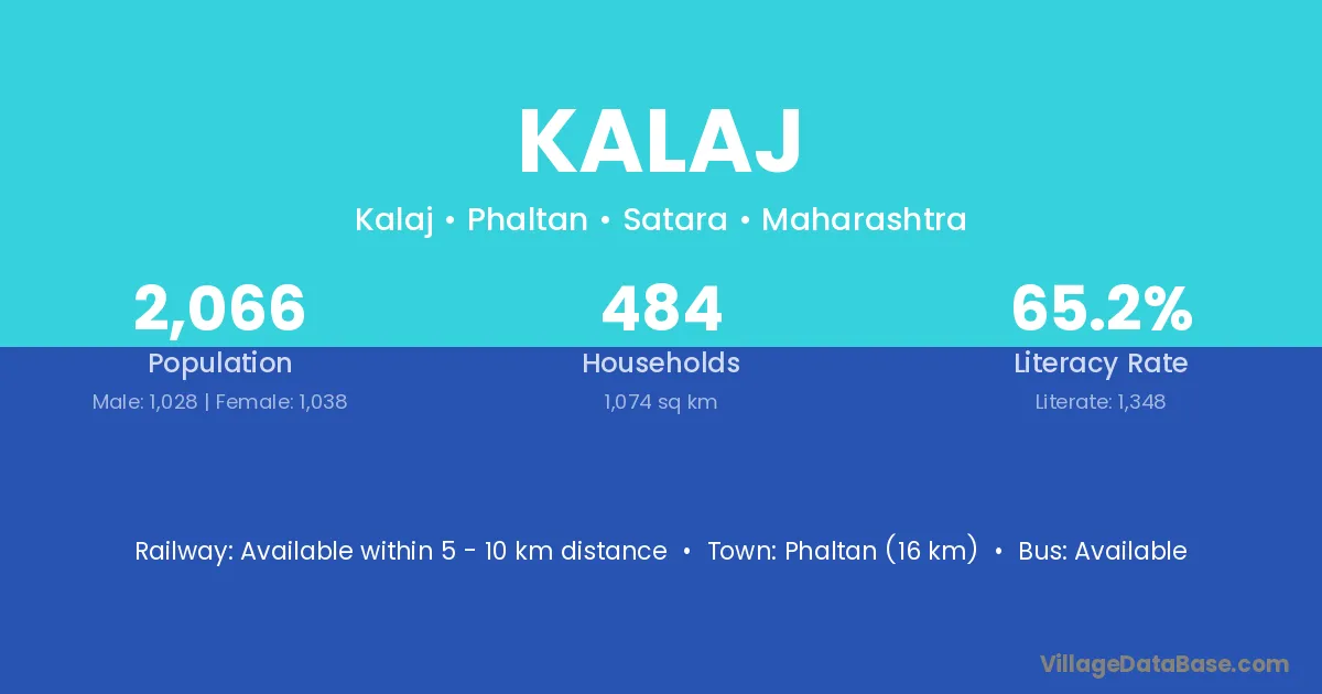 Phaltan (16 km) is the nearest town to Kalaj village for major economic activities and is located approximately 16 km away.