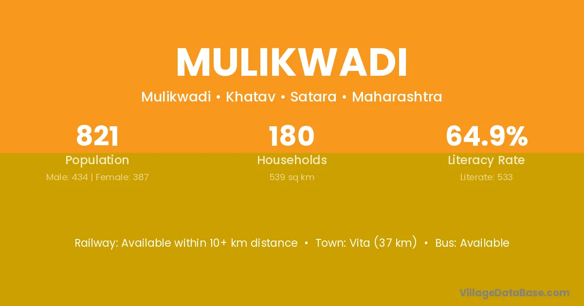 Phaltan (18 km) is the nearest town to Mulikwadi village for major economic activities and is located approximately 18 km away.