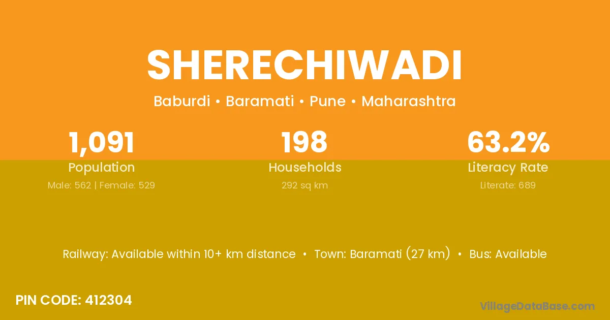 Phaltan (16 km) is the nearest town to Sherechiwadi village for major economic activities and is located approximately 16 km away.