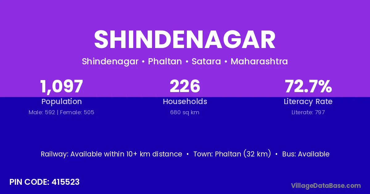 Phaltan (32 km) is the nearest town to Shindenagar village for major economic activities and is located approximately 32 km away.