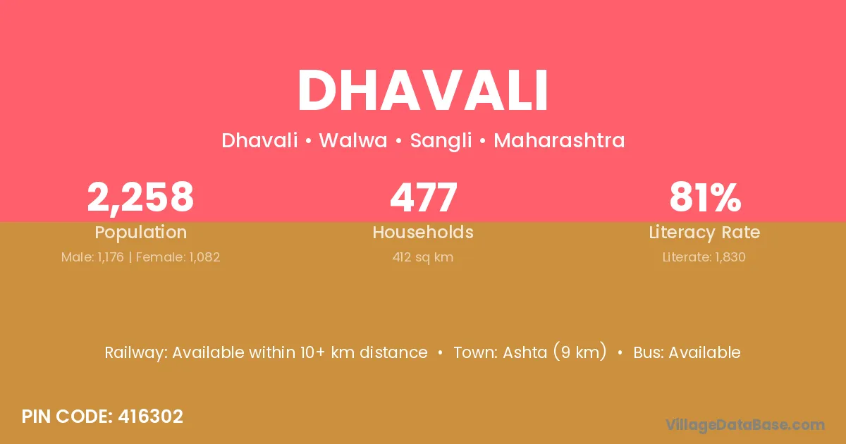 Wai (17 km) is the nearest town to Dhavali village for major economic activities and is located approximately 17 km away.