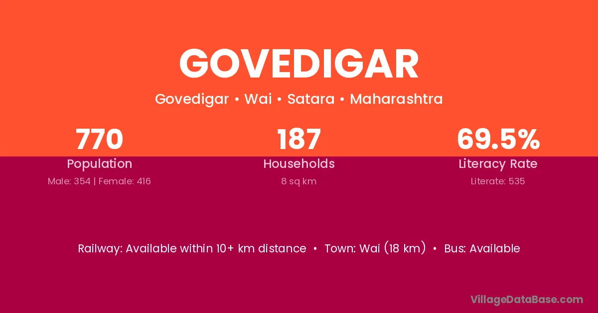 Wai (18 km) is the nearest town to Govedigar village for major economic activities and is located approximately 18 km away.