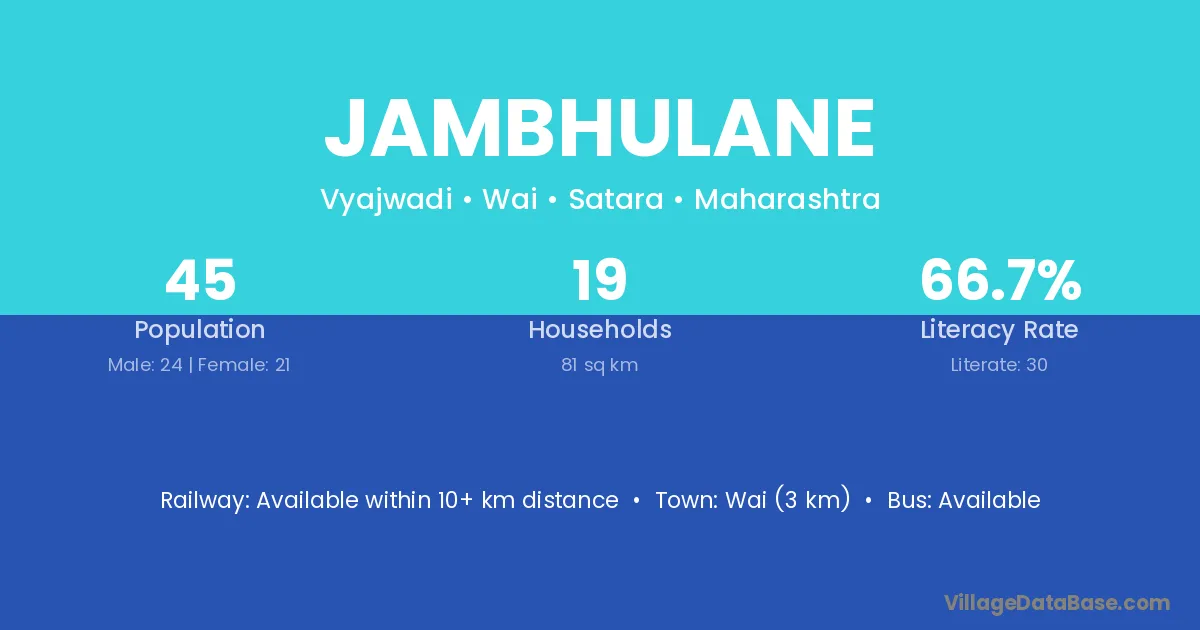 Wai (3 km) is the nearest town to Jambhulane village for major economic activities and is located approximately 3 km away.