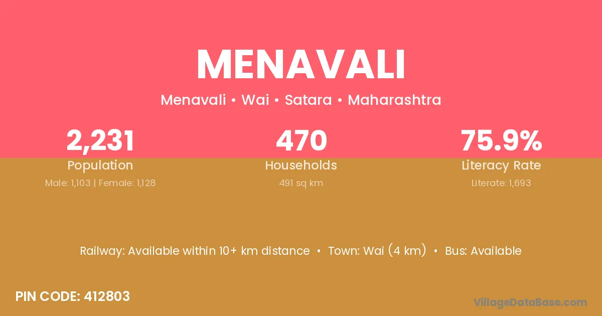 Wai (4 km) is the nearest town to Menavali village for major economic activities and is located approximately 4 km away.