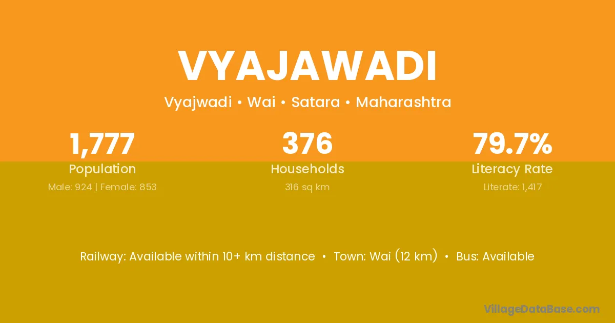 Wai (12 km) is the nearest town to Vyajawadi village for major economic activities and is located approximately 12 km away.