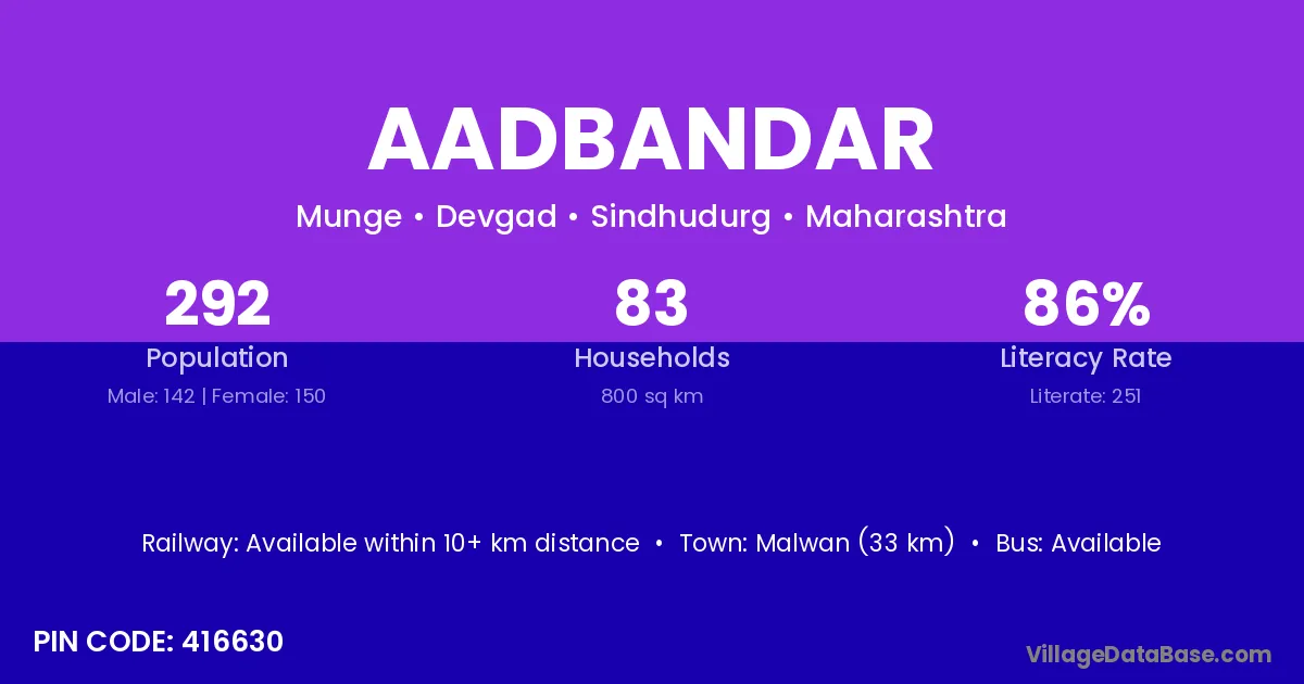 Malwan (33 km) is the nearest town to Aadbandar village for major economic activities and is located approximately 33 km away.