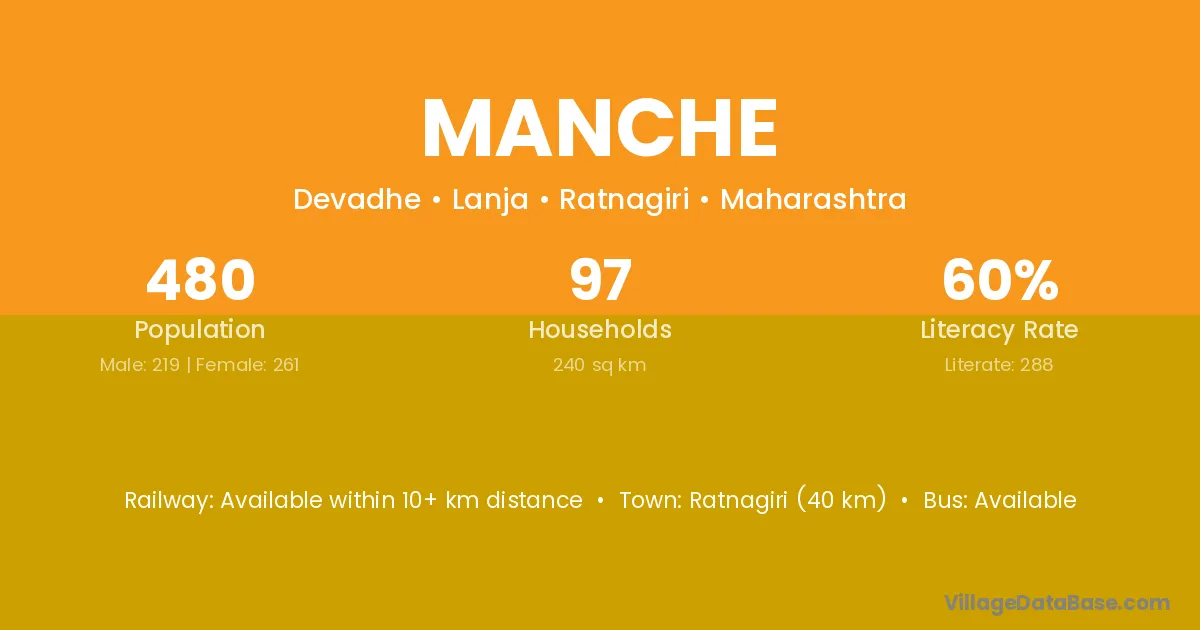 Rajapur (26 km) is the nearest town to Manche village for major economic activities and is located approximately 26 km away.