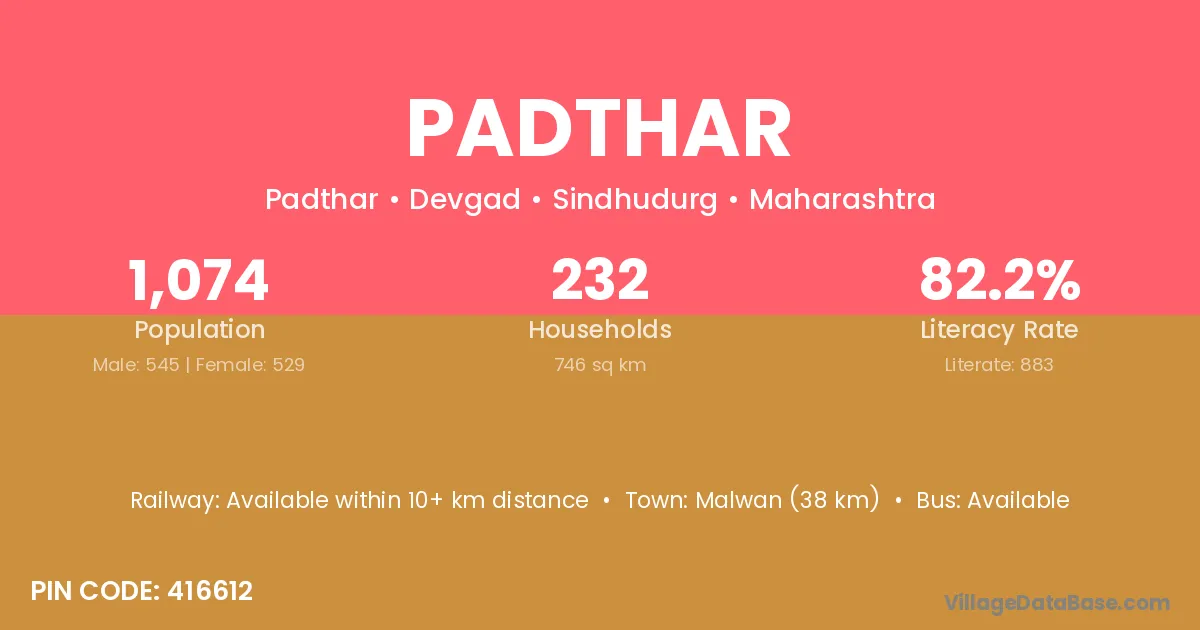 Malwan (38 km) is the nearest town to Padthar village for major economic activities and is located approximately 38 km away.