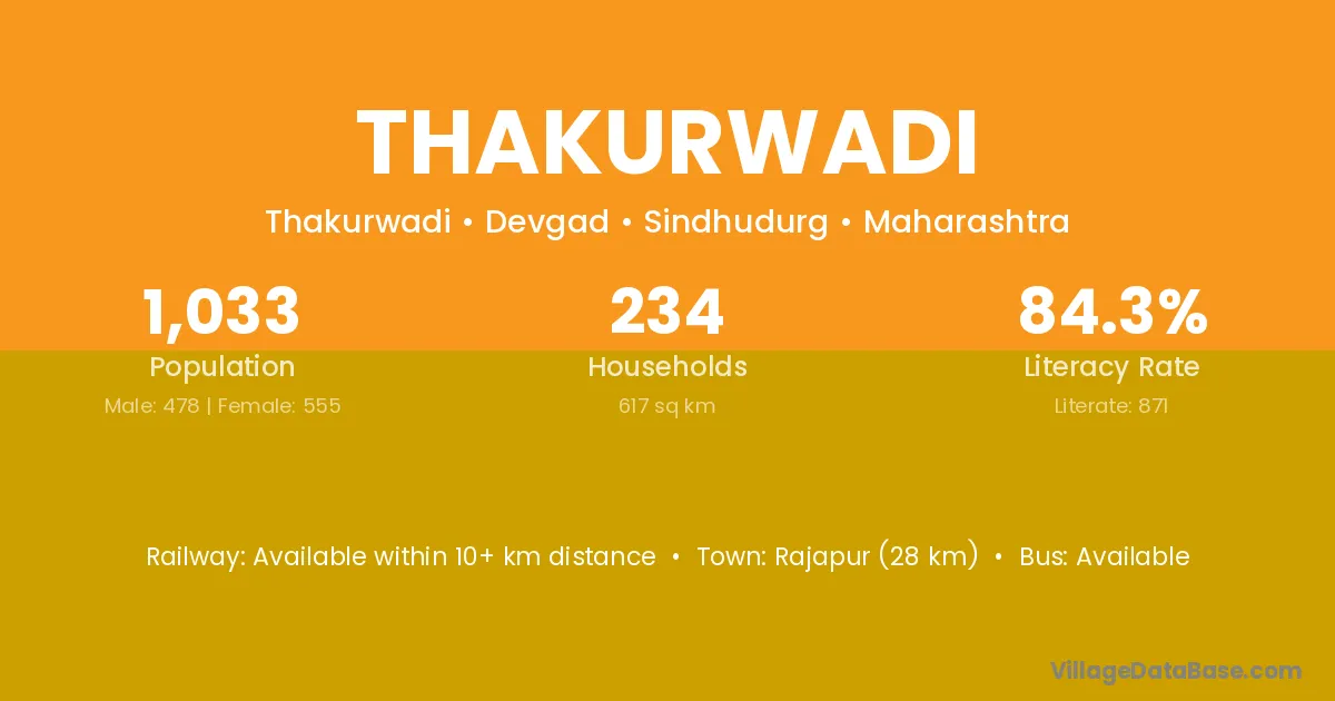 Thakurwadi village has a total population of 1,033 people, of which 478 are males and 555 are females.